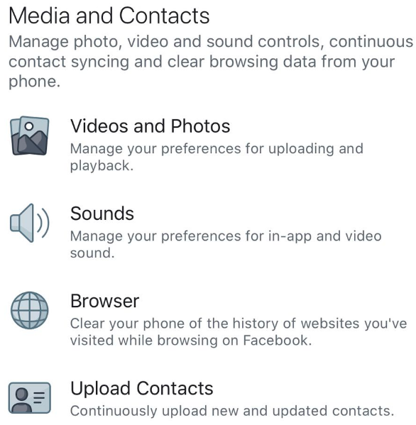 في تطبيق Facebook ، انتقل إلى الإعدادات الخاصة بك وانتقل إلى أسفل إلى “الوسائط وجهات الاتصال”. حدد “تحميل جهات الاتصال” وتأكد من تعطيل الخيار.