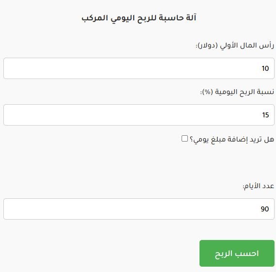 - عدد الأيام: المدة الزمنية التي ترغب في احتساب الربح خلالها.