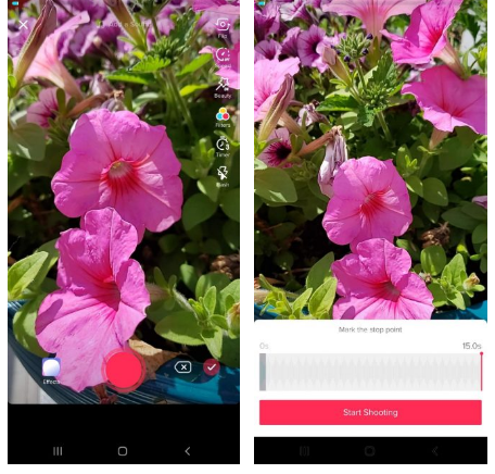 حدد علامة الجمع في أسفل الشاشة لبدء إنشاء الفيديو الخاص بك. ومع ذلك، بدلاً من الضغط باستمرار على الزر الأحمر الكبير، انقر فوقTimer على الجانب الأيمن من الشاشة. يتيح لك هذا اختيار وقت إيقاف الفيديو الخاص بك. بمجرد استخدام شريط التمرير لتحديد وقت، سيعرضTikTok العد التنازلي لمدة ثلاث ثوانٍ قبل أن يبدأ التسجيل.
