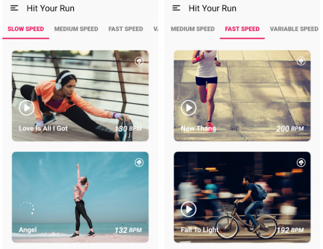 علامة التبويب الأخيرة تسمى الجري. مثل RockMyRun ، يمكن أن تتطابق مع إيقاعك. فقط اضغط على زر التشغيل، وابدأ الركض، وسيهتم التطبيق بالباقي.